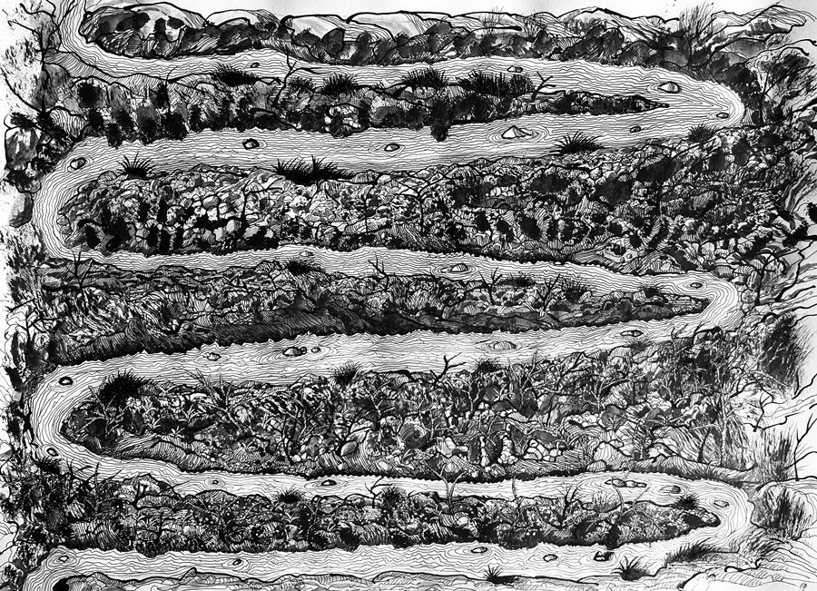 "Rivier" 2025 50 x70 cm pen, gewassen inkt