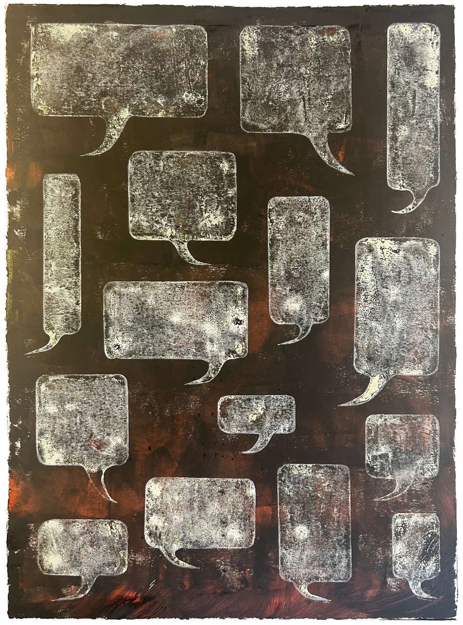 2023_90 x 52 cm lepeldruk 8 gangen op papier, lepel druk met rubber vormen - 200,- euro